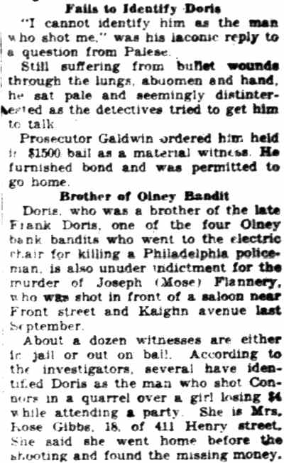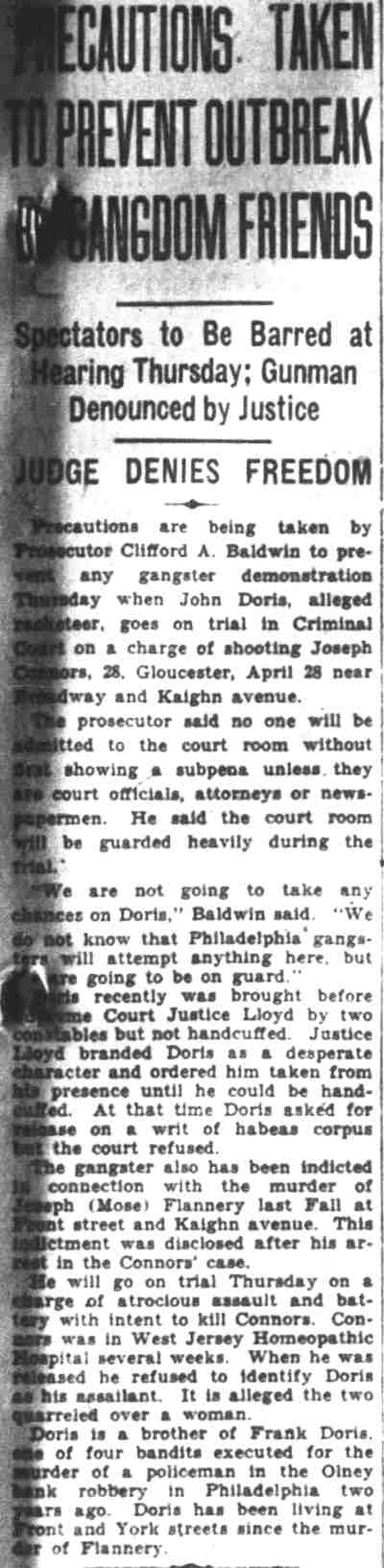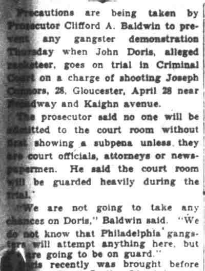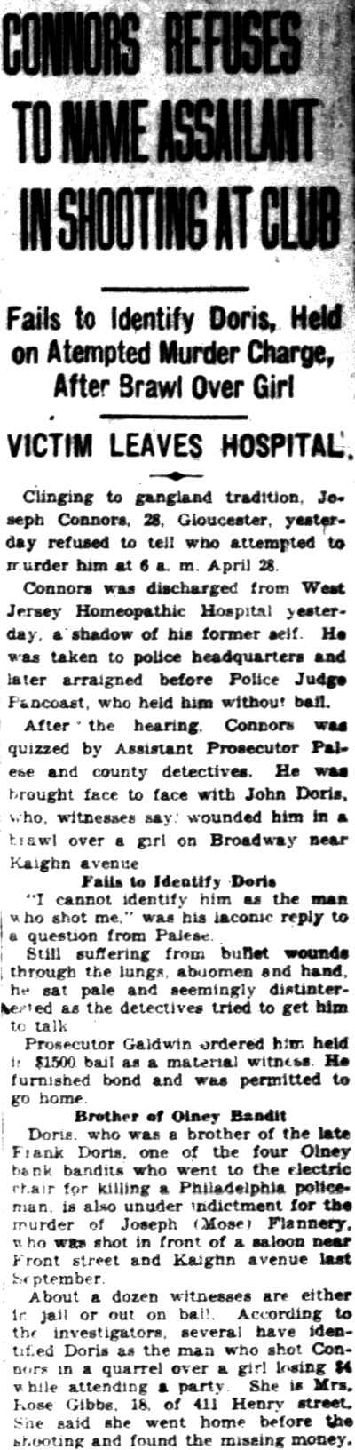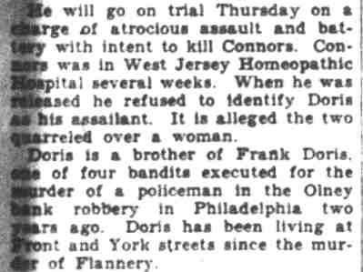 John Doris - Frank Doris - Joseph O'Connor aka Joseph Connors - Broadway - Kaighn Avenue |