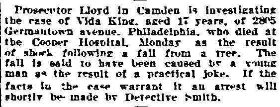 Crawford Smith - Carman Street - Charles Simonin - Fairview Street - John Studinger - Federal Street Samuel Ford - John Geronio - Cooper Street - James Davis - Mt. Vernon Street - Oscar Conway Mitchell Street - Mary Angelo - Pine Street - Thomas Kirk - Carpenter Street - Samuel Karon Mt. Ephraim Avenue - Walter Hart - Thurman Street - Frank Kulczynski - Orchard Street Clarence Arthur - Clifford Del Rossi - Benjamin Simon - Leon Branch - Walter Smith - Howard M. Smith Michael Tenerelli aka Mickey Blair - Anna Smallwood - Fred Klosterman - Joseph Klosterman Lillian Vincent - Frank Tyson - Edmund Powell - William Kinsler - John Feitz - Walter Taylor - Joseph Rea Harry Smith - John Lockwood - Edward Troutman - Thomas Moreland |
