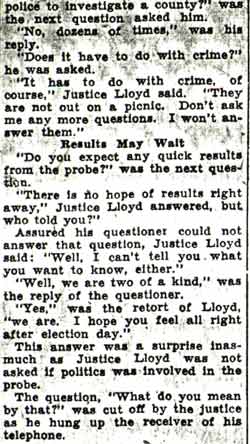 more. "Maybe that's hardly the right comparison," laughed the jurist, "but let's say that I feel like a boy out of school. You know that's a trying position, being on the Supreme bench. "I'll say that I went through 2000 books a year. The worst of the experience was that you never were free from your work. Don't mistake my meaning. You spent your day in the chambers or in the courtroom, then when you went to bed at night the problems, the cases, 'the decisions, the opinions all raced through your mind during the night." "So you like the work of getting back into practice?" we asked the justice. "Yes sir," he replied. Then his eyes twinkled as we suggested that perhaps he might run against a contretemps sometime. "I want to be around the courtroom," I told the justice, "when you begin to slam an opinion or precedent and find you set them both." MIGHT HAPPEN HERE ALL RIGHT "You know," he said seriously, "such a thing could easily happen. In fact, it did to one of my colleagues. You can't keep track of thousands of opinions a year. No man can. "To refer to my colleague on the supreme bench. He was hearing an argument one day, shortly before I retired from the bench. Counsel for one of the litigants quoted an opinion given in a case similar to the one being heard, and in which my colleague made a ruling. "It was apparent the justice did not hold much sympathy with the opinion which had just been read. "Who wrote that opinion my colleague asked, rather sharply. " 'Well,' counsel smiled, 'with all due reference to the court, you did.' " "Now," laughed the former justice, "it won't do for me to make any arguments unless I'm pretty sure if the origin of the decisions and precedents I quote." If Justice Lloyd becomes mellow with his release from the judicial serfdom which he says he feels his present freedom to be, I figure New Jersey has judges who should be summarily pushed right into the lay ranks as speedily as possible. This Garden States, with Hague in Jersey City and some of the judges who wear its ermine, should be rather tolerant of doings below the Hague-Sweatshop Line. When we scan the destruction of civil liberty in Jersey City, and read some of the unholy decisions of the bench, we stand aghast. BERRY SEEMS ANOMALY ON BENCH This Maja Leon Berry seems a veritable anomaly to be wearing the ermine of any judiciary. The decisions that he makes in labor matters are absolutely without reason in either law or fact. He is probably the worst foe that constitutional government knows on any bench of which I have heard. His ruling that a strike in any plant ends when strikebreakers fill the places, of the strikers' is such a miscarriage of justice, that, if rendered from a backwoods bench, would be laughed out of court. No, court can sensibly or in reality declare when a strike starts, or when it ends. That is a matter for the parties involved, the strikers. To say that a strike ends when strike-breakers fill places is the same, as to declare that no freeholder can vote on a question in Camden, because a spectator is occupying his seat. That decision just about hits the apex of the ridiculous. That any jurist would make such a decision, save at a minstrel show or a comic opera, is proof enough that one vice-chancellor is the "Berry" for legal decisions that can't lie found in Blackstone, Coke or any other lawyer's mind, save Berry's. Along with that masterpiece that a strike ends when there are no vacant places at the loom, Berry climbs another legal Matterhorn. The climax to judicial nonsense that leaves Berry in a class by himself. Berry has just decreed that a labor union cannot be the judge of its own membership. He has ordered a union to reinstate a member who was ousted, for good and sufficient reasons according to the union. Berry says no. The member must be reinstated because the union is not to be the sole judge of the qualifications of its own membership, a privilege that has been given to any organization of which I have ever heard or read. Of course, the opportunity to place labor spies in a union is wide open under such a decision. Judging from Berry's record that might be the inspiring motive in, both the member's suit and the bench's decision. Vice-Chancellor Berry, too, seems to believe, as did Congressman Tim Campbell, famous Tammany sachem of years ago: "What's the Constitution among friends?" The vice-chancellor has just decided that peaceful picketing may be satisfactory to the United States Supreme Court; but we'll have none of those didoes in Ocean County, where justice and freedom sit personified in Vice Chancellor Maja Leon Berry. Therefore, peaceful picketing of hotels where strikes are in existence in Lakewood, or any other spot, is illegal. We'll have none of that Russian gold circulating in Lakewood, any more than ill Jersey City. We'll have no sabotage of our kitchens and menus in Lakewood hotels under orders from Moscow. |