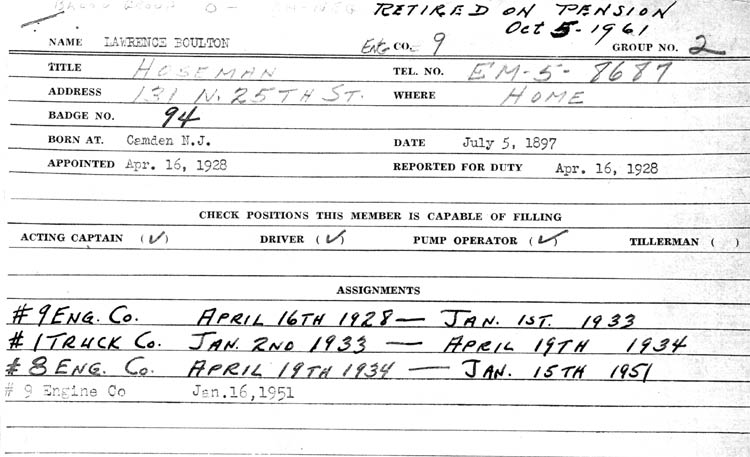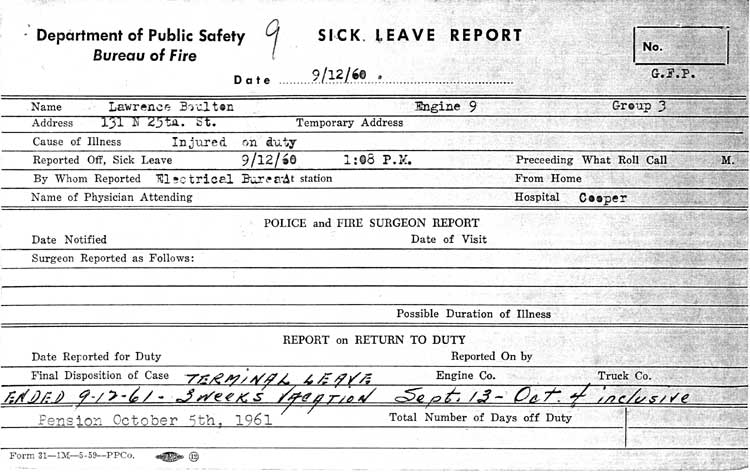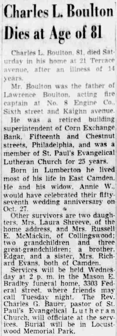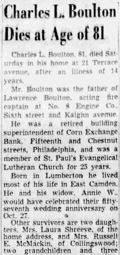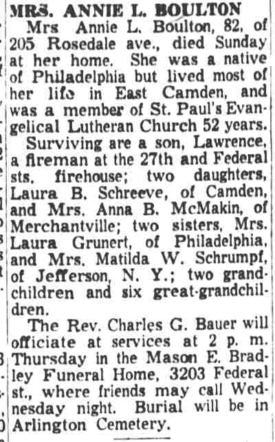 Shaken Up in Crash William M. Denof Jr., the son of a Camden undertaker, of Fifth and Spruce Streets, suffered a possible fractured skull and cuts, and six other members of the Junior Moose baseball team of the Camden Minor League were shaken in an automobile accident last night. Their truck, driven by Silvio Di Medio, 17, of 1105, South Fourth Street, collided at Fifth and Berkley Streets with a car driven by Lawrence Boulton, 35, a city fireman, of 1016 Monitor Road. The accident occurred at 6:15 p.m. Denof was thrown to the road. He was treated at the office of Dr. Mordecai M. Pinsky, 944 South Fifth Street, and taken home. Denof is second baseman on the Camden High School team and plays shortstop for the Junior Moose. According to Detective John Kaighn, the accident occurred when Boulton, driving west on Berkley Street, attempted to make a right turn into Fifth street. Boulton was not held. Others in the truck were Elmer Yost, pitcher, of·315 Mechanic Street; Alfred Di Giacomo, third baseman, of fourth and Viola streets; Frank Pietrizyk, Jr., o f 1061 Morton street; John Pirroti, of 1464 South Fourth Street , and Forrest Collins, 355 Mechanic Street . They required no medical treatment. The youths were en route to a game at Westmont. |