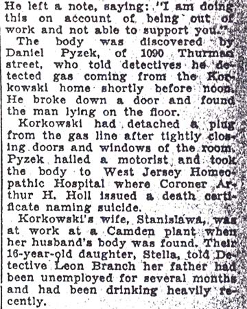 Crawford Smith - Carman Street - Charles Simonin - Fairview Street - John Studinger - Federal Street Samuel Ford - John Geronio - Cooper Street - James Davis - Mt. Vernon Street - Oscar Conway Mitchell Street - Mary Angelo - Pine Street - Thomas Kirk - Carpenter Street - Samuel Karon Mt. Ephraim Avenue - Walter Hart - Thurman Street - Frank Kulczynski - Orchard Street Clarence Arthur - Clifford Del Rossi - Benjamin Simon - Leon Branch - Walter Smith - Howard M. Smith Michael Tenerelli aka Mickey Blair - Anna Smallwood - Fred Klosterman - Joseph Klosterman Lillian Vincent - Frank Tyson - Edmund Powell - William Kinsler - John Feitz - Walter Taylor - Joseph Rea Harry Smith - John Lockwood - Edward Troutman - Thomas Moreland |