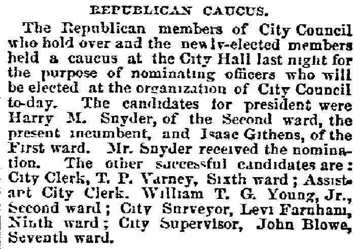 M. Snyder - Isaac Givens - Thaddeus P. Varney William T.G. Young Jr. - John Blowe |
