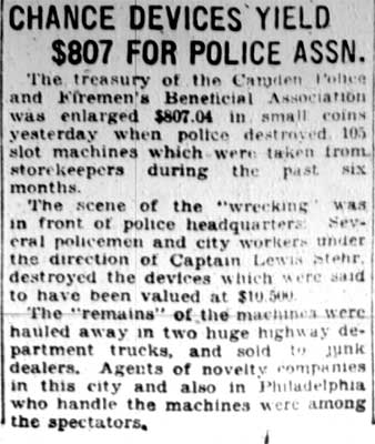 POLICE OFFICIALS OF STATE MEET HERE More than 300 state officers and delegates representing 78 New Jersey police departments were present yesterday at a meeting of the State Patrolmen's Benevolent Association at Tenth Street and Kaighn Avenue yesterday. All state officers were present at the afternoon meeting, including State President Dennis Byrne, of New Brunswick; First Vice President Henry Miller, of Rahway; Second Vice president, August Harasdzira, of Garfield; Recording Secretary Michael McKeever, of Trenton; Financial Secretary Thomas Higgins, of West Orange, and State Treasurer William Mallon, of West New York. Police work used in various cities was discussed. Plans were made for the state convention in Wildwood September 14, 15 and 16. Everett Joslin, Herbert Bott and George Weber were named local delegates to represent the local union, No. 35 at the Wildwood convention. Chief of Police Lewis H. Stehr welcomed the delegates. A telegram of welcome was read from Director of Public Safety David S. Rhone, who is in Washington. The committee in charge of yesterday's meeting consisted of Clifford Flenard, president of Local No. 35; Stanley Wirtz, Edward Cahill, Frank Wilmot, John McTaggart, James McTaggart and Howard Henery . |
