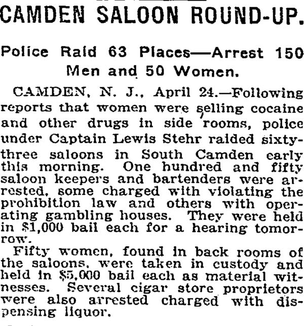 John Doris - Frank Doris - Joseph O'Connor aka Joseph Connors - Broadway - Kaighn Avenue |