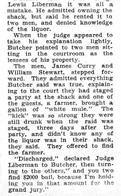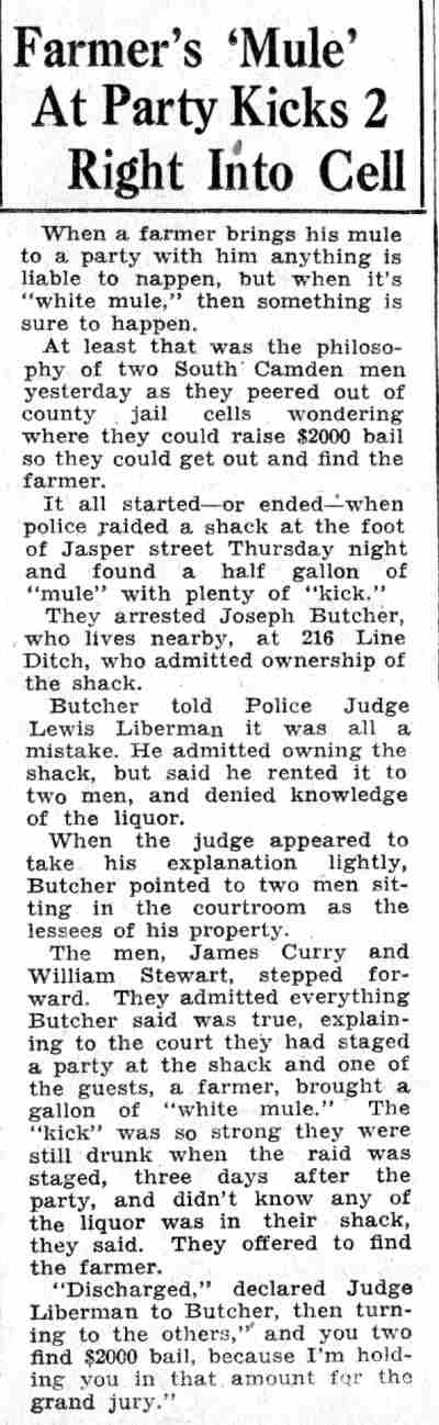 John V. The men were Albert Waite, 29, of 916 Pearl street, and John Barrett, 34, of 237 North Eighth street. In the latter's pocket, Wilkie said he found a half pint of "white mule." Barrett refused to tell Wilkie where he brought it, so in a pre-hearing conference with Judge Liberman and Court Clerk Edward Smith, it was decided to give Waite and Barrett, originally arrested as just drunk and disorderly, a trial on the more serious charge of possessing illicit liquor. If Barrett gets a change of heart and names the seller, his sentence later will be suspended, said the judge.
