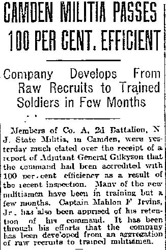 MAHLON FOWLER IVINS JR. was born in Camden NJ in 1878. The Ivins family lived at 535 Arch Street in Camden at the time of the 1880 census, by 1887 they had moved to 525 Arch. Mahlon F. Ivins Sr. operated M.F. Ivins and Company, a painting business, was involved in banking, served two terms on the Camden City Council, and two terms as a Camden County Freeholder in the late 1880s and early 1890s. Mahlon Ivins Jr. attended the Bordentown Military Institute and served during the Spanish-American War. In the February 23, 1901 edition of the Trenton (NJ) Times, it was printed that "Mahlon F. Ivins, formerly a student at B.M.I. was calling on friends here today." An active member of the Elks in Camden, he took part as a cast member in the lodge's fourth annual minstrel show on May 1, 1902. In the early 1900s Mahlon Ivins Jr. wed Florence Stiles. They eventually settled in Merchantville NJ, where they lived at 27 Walnut Street. His next door neighbors were the Mark Lewis family, their son, Major Mark Lewis, a West Point graduate, was killed while on active duty in a plane crash at the outset of the war. Mahlon F. Ivins Jr. served during World War I, and the 1930 census shows him as a Captain with the New Jersey Quartermaster Department, most likely working at the National Guard Armory in Camden. Mahlon F. Ivins Jr. was also involved in civic affairs, and was a member of the Centennial Anniversary Committee of Camden New Jersey, which planned events for the 1928 celebration of 100 years of Camden's founding. The committee was composed of Charles S. Boyer, Chairman; t. yorke smith, E.G.C. Bleakly, Mahlon F. Ivins Jr., Fred S. Caperoon and Frank S. Albright. Mahlon F. and Florence Ivins Jr. were still residing in Merchantville as of 1947. Paul Mathis, the famous Camden-born dancer, was the nephew of Mahlon Ivins Jr. |