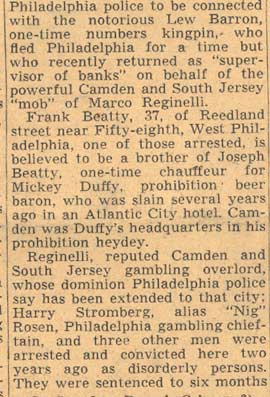 Stanger - "Big Bill" Wierman John Fisher - Nicholas Bartilucci - Joseph Conti - Catherine Christman Marco Reginelli aka John DeMarco - Mary Reginelli South 33rd Street - North 34th Street |