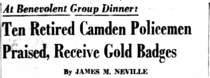 33rd Street - Harry E. Renders - Charles Luers North 2nd Street - George W. Rush - Farragut Avenue - Watson Street Joseph Benson - Charles Benson - Edward Marshman - Morse Street John Grogan - North 22nd Street - Charles Dudley - North 3rd Street Ralph Bakley - Vernon Jones - Thomas Cheeseman - Marshall Thompson George Thomas - Clinton Street - James Williams - South 2nd Street John B. Simons - Samuel Aronow - Kaighn Avenue |