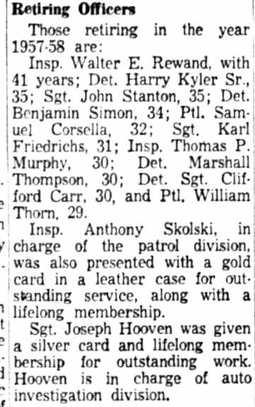 Stanton Benjamin Simon - Samuel Corsella - Karl Friedrichs - Thomas P. Murphy - Marshall Thompson Clifford Carr - William Thorn - Joseph Hooven Sr. - Joseph W. Cowgill - Anthony Skolski |