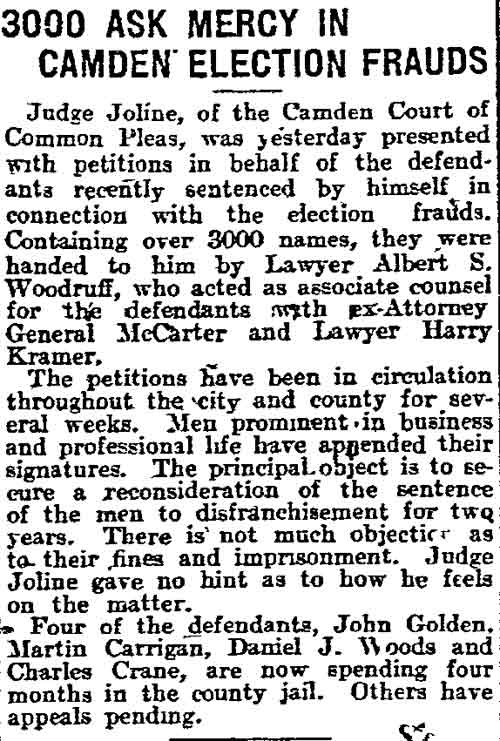 Inquirer June 1, 1911 Charles Van Dyke Joline Click on Image to Enlarge |