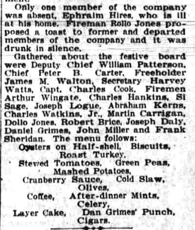Carrigan Rollo Jones Charles Cook James White Samuel Sheer Edward Finley Joseph T. Daley Joseph Ernst Seth D. Monnell William K. Buzine Charles Sturgis Samuel T. Whitezell Ephraim T. Davis J. Oscar Till Jr. John H. Vickers Frederick Morse Harry C. Anderson William Miller Engine Company 5