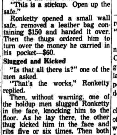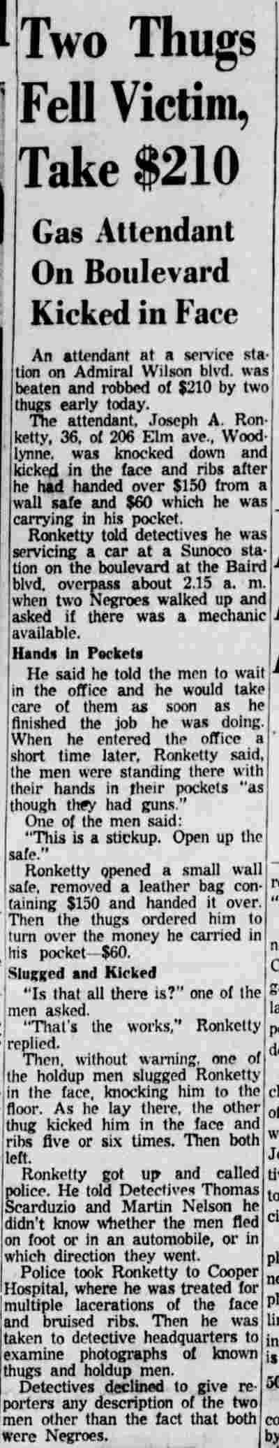 60-DAY SENTENCE GIVEN IN THEFT OF WATCH Sixty days in the county jail was the sentence meted out to Wilmer Brown, 52, of 3002 Thompson Street, when he was charged in police court yesterday with stealing a watch. Arrested on complaint of Martin Nelson, 561 Spruce Street, Brown denied the charges and said he knew nothing of the timepiece. Nelson testified that he went to a house on Cherry Street near Sixth with Brown and fell asleep. His watch was taken while he slept, he said. He admitted he had been drinking. William Pollard, of 751 Cherry Street, said he was in the back yard of the house on Cherry Street when Nelson and Brown appeared. An hour after they entered the place, he said, Brown asked him for a pair of pliers to cut it chain. In sentencing Brown, Police Judge Pancoast said he believed the man wanted the pliers to cut Nelson’s watch chain. |