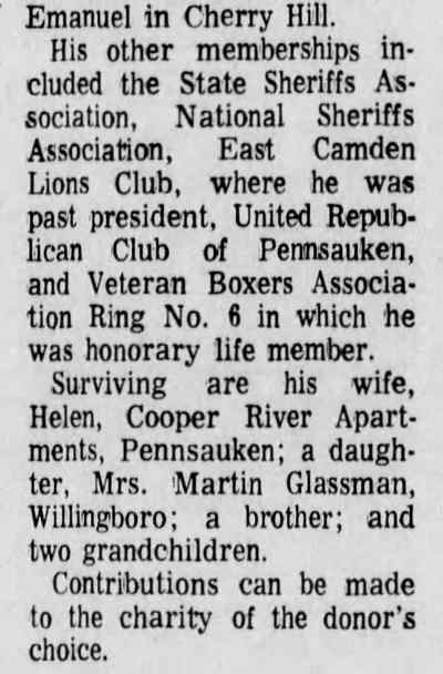 FREED IN ONE ROBBERY, ARRESTED FOR ANOTHER A suspect, released a week ago in connection with the $11,000 Camden Radio Condenser Company holdup, was rearrested Saturday and held in $3000 bail on a charge of robbing an East Camden bar. The accused is Stanley Powell, 26, of 1256 Whitman Avenue, alleged to have stolen, with the help of two other men of unknown identity, a marble machine and 100 cigars from Marty's Olde Tappe Room, operated at 1990 Federal Street by Marty Segal. Powell pleaded not guilty. City Detective, George Zeitz testified that he learned that Powell's new expensive car had been seen near the taproom early on Thursday, when the robbery occurred. Zeitz said he obtained this information after Powell had been quizzed and released in the radio firm holdup. Upon further investigation, Zeitz asserted, he found a witness, Daniel Danter, 1985 Carman Street, who allegedly saw Powell and two other men carrying "something" from the store and loading it in the car. zeitz , according to zeitz , identified Powell. Elwood Cox, of 1981 Carman Street, is alleged by Zeitz to ha ve seen Powell's car in that neighborhood on the morning of the robbery, but didn't know any of the men in it. Acting Police Judge James Smith fixed the amount of bail. |