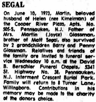 Martin Segal - Joseph Siegle - Federal Street - Marlton Cafe - South 34th Street |