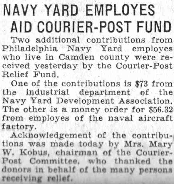 Philadelphia. "Navy Day," he asserted, "is set apart each year to bring to the attention of the people of the United States the function of our navy in the maintenance of national defense As citizens it is our duty to know something about the navy, so that we may know why we need a navy and why it must be maintained in efficient condition. "Experimental work performed by the navy, led to the development of metal aircraft construction, and now metal construction is the recognized standard." Governor Earle said that "not only has the navy blazed the trail across the Atlantic, but it also sent a squadron of patrol planes from San Francisco to Hawaii." Four members of the Camden City Commission attended the launching of the destroyers Cassin and Shaw at the League Island Navy Yard. They are Mayor von Nieda, Commissioners Mary W. Kobus, George E. Brunner and Frank J. Hartmann Jr. Immediately after the launching the keel of the new cruiser, U. S. S Wichita, was laid on the No. 2 ship-ways. The keels of the Cassin and Shaw were laid in October, 1934. The Wichita is the eighteenth of the "flyweight" cruisers built by the United States under the provisions ot the London naval treaty of 1930. Henry Latrobe Roosevelt, assistant secretary of the navy, was the principal speaker of the launching of the two destroyers. |