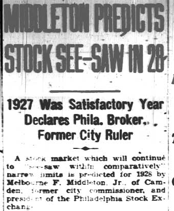 RE-ELECTED For the seventh consecutive term, Melbourne F. Middleton, Jr., of Camden, has bee chosen president of the Philadelphia Stock Exchange. He was nominated for the position yesterday and there was no opposition. Formal election will take place at the annual meeting of the exchange. Mr. Middleton, who was city commissioner of revenue and finance in the former Non-Partisan administration here, lives at 538 Cooper Street. Ten members of the exchange were nominated yesterday to the board of governors. |