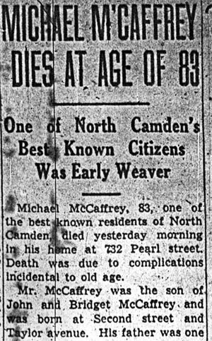 McCafferys were living in Camden in the 1870s. The 1878 City