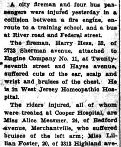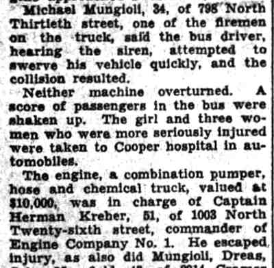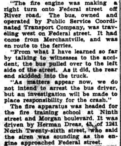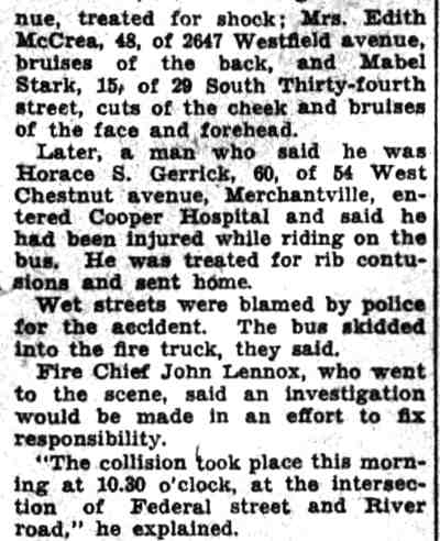 Company 1 John Mohrfeld - Howard Currie - Cramer Street - Beideman Avenue - Sherman Avenue North 26th Street - Highland Avenue - Haddon Avenue - Westfield Avenue - South 34th Street |