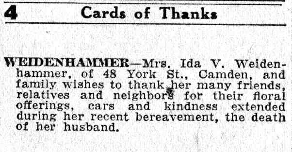 B. Weidenhammer managed the Camden branch of this firm 1914-1915 Click on image to Enlarge |