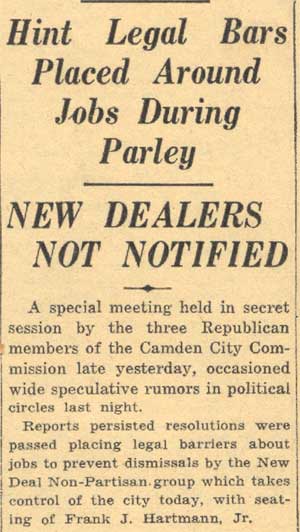 Because of the unprecedented rush to pay first-half taxes for 1933, Commissioner Harold W. Bennett, director of revenue and finance, may extend the deadline from 9 p. m. to-night to 9 p. m. June 7 without penalty. The director, who has asked for more help, said it was the greatest tax rush in the history of Camden. The line of taxpayers yesterday extended past the public health offices, almost a full city block. A large volume of receipts also is coming in by mail, he said. The commissioner said he was unable to issue figures showing total receipts to date, but said about $119,000 was paid in Saturday, half of which was in scrip. Five cashiers' windows are open. Three always have been sufficient to accommodate last-minute, payments in previous years. Bennett said he attributed the unprecedented rush to the fact that bills were late in being sent out, that persons wish to cash in on scrip and because citizens have been impressed by the "educational campaign" conducted by the city, impressing the importance of prompt tax payments. A. Benjamin Sparks, former receiver of taxes; Otto E. Braun, formerly employed in the tax office, but now with the emergency relief, and men from the controller's and assessor's offices have been pressed into service. Bennett has asked for more from other department heads. . |