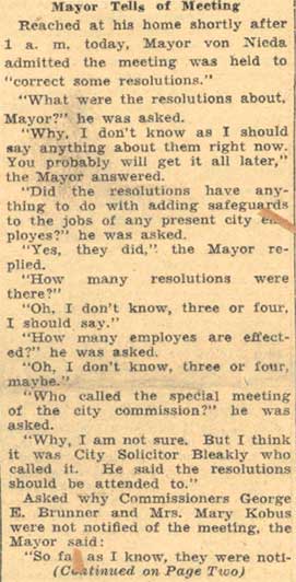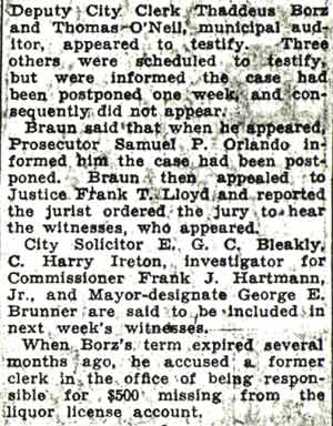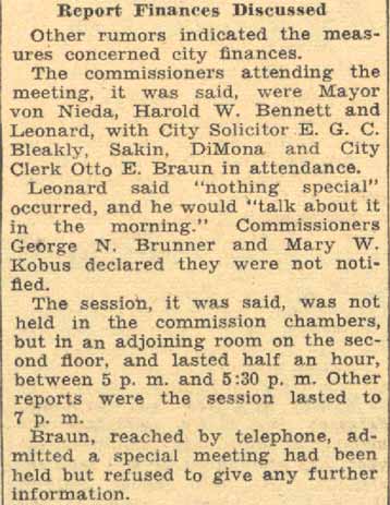 minutes and said he will continue to do so in The meeting was held in Braun's private office. Only the members of the board, Mrs. Caperoon, Braun and newspaper reporters attended. A license was granted to the Eleventh Ward Democratic Club, 1014 North Twenty-seventh street. A transfer of the license of Charles T. Bateman from 600 Mt. Vernon street to 1900 South Sixth street was approved. Police Probe Asked Police investigation was requested by the board on the applications of Peter Bradsky for 801 Chestnut street and Frank D'Alesandro, 523 South Third street. The police department will do the bulk of the investigating for the new board, Mrs. Kobus, has announced. A personal investigation by members of the board was decided upon in the application of Dominic Guglielmo for a transfer from 245 Chestnut street to 2222 Federal street. Action was deferred on the application of a transfer of the license of Mary Hinkson to Edgar H. Beattie at 949 North Twenty-fifth street. |