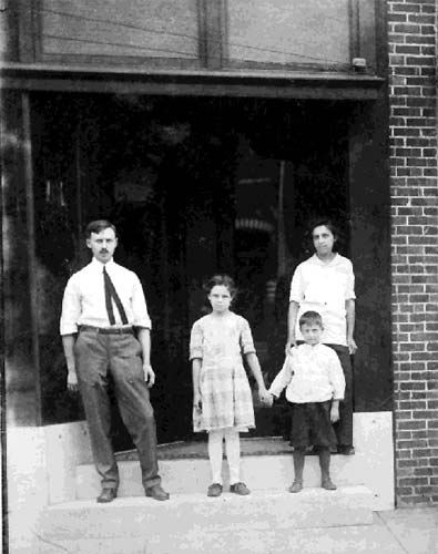 Francis X. Braun & children outside his tailor shop - 1910 | ||