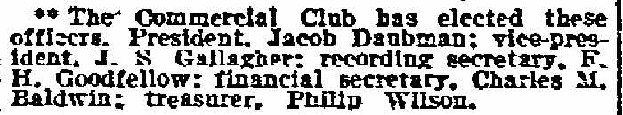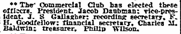 Jacob Daubman - J.S. Gallagher - F.H. Goodfellow - Charles M. Baldwin - Philip Wilson - Commercial Club |