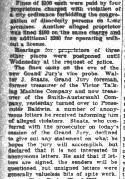 R. Stewart - T. Harry Rowland Charles V. Dickinson - Arthur Colsey - Clifford A. Baldwin - Samuel M. Shay Austin H. Swackhammer - Manle J. Steyer - WIlliam Sharkey - Dr. C.N. Mason Gustave Huseman - John Uboldi - Albert Cohen - James Jordan - Herman Romaine Harold Nickturn - Howard C. Franklin - Arthur "Gyp" Del Duca Charles Fanelli aka Charlie Mack - Harry Fleisher - John Cernivo Thomas Gibbons - Walt Mills - Edward J. Walsh Owen Sweeney - William Marshall - Conrad Bittner - Harry Underwood Frank Truax - Walter Kennedy aka Walt West - Harry Willingmeyer Fairview Street - Penn Street - Rand Street Louis Ward - Dean Kessler - Pasquale Massi - Jacob Melzer - Frank Atwater Louis Scott - Edward Brady - Carl Pisco - Joseph Pisco - Jim Jackson Woodrow Jackson - Frank Mucci - W.H. Seckel - Davis Keese - Gustave Seletos Roland Davic - William Bopergola - Tony Basile - Jospeh Gogenti - Frank Garafalo Edward North - Joseph Carboni - Geoge Huber - George Walters |
