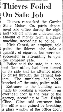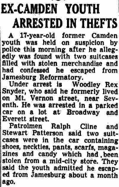 Charged with being a chronic offender against the all-night parking ban, Wolden Magann, 29, of 2801 Westfield avenue, was fined $5.00 and costs last night by Acting Police Judge James S. Smith in Camden traffic court. Policeman Ralph Cline arrested Magann January 13 after he had tagged his car seven times. Since his arrest his car has been tagged several times more. Charged with reckless driving after crashing into the opened Wilson boulevard drawbridge over Cooper River, Warren Mahn, 21, 207 Pavilion avenue, Riverside, was found not guilty and his case dismissed. George W. Johnson, bridgetender, charged that Mahn ignored red lights. Mahn said he saw only one light, a white one. He denied speeding. Judge Smith dismissed charges of passing a red light and driving without a license against Joseph M. Shapelow, 26, of Woodlynne. He was arrested January 28 by Policeman Thomas Kauffman. Shapelow said he was hurrying home because his mother, a passenger in his car, was ill. He said he was without work. Nine motorists failed to appear. |