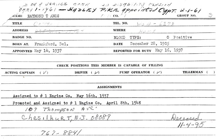 February 1, 1961. Fireman Hadley Pike was promoted to replace