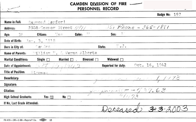 Firemen Here Get Advanced First Aid Course More than 40 members of the Camden Fire Department have completed the Red Cross course in advanced first aid according to announcement today by Howard F. Keller, Collingswood, chairman of the Camden County Chapter's first aid committee. Instruction sessions were under the direction of Fire Chief William V. Pfefferle, Drillmaster Anthony Dzinski, a member of the local chapter first aid group, assisted by Nicholas E. George, were instructors. Dzinski is a member of the Red Cross faculty at the National Aquatic School held in this area each year for instruction in advance safety techniques. Dick Harris, director of Red Cross safety services, supervised. All members of the graduating class are personnel of several units housed at fire department headquarters here. These include the Headquarters Company, Engine Company 2, Rescue Squad 1 and truck company 1. these groups include: Rescue Squad: Captains Arthur Batten, Philip A. Stinger and albert weller; Edward Brendlinger, harrison macneir, Robert Olesiewicz and james w. smith. Headquarters Company: raymond banford, John K. Voll and john w. yates. Truck Company 1: Captains Daniel Jiannetto, Robert E. Dukes and otto v. kaiser; William Watkin, chester gedrich, George Baxter, john mogck, George C. Hennessy, Charles Devlin, Ambrose W. Faust, joseph mctaggart, Howard R. Taggart, William G. Winstanley and elmer johnson jr. Engine Company 2: Captains James R. Asher, Thomas Winstanley; Carl Wirtz, james mcgrory, Edwin V. Decker, james stewart, Francis X. McTaggart, anthony t. orme, Mario D. Fattore, james o. jones, Francis P. Stibi, william hopkins, Robert E. Briggs, john Giuliano, casper martelli, Harold H. Pike, john j. vane, William Stibi, john dimaggio and Harry Kleinfelder. |