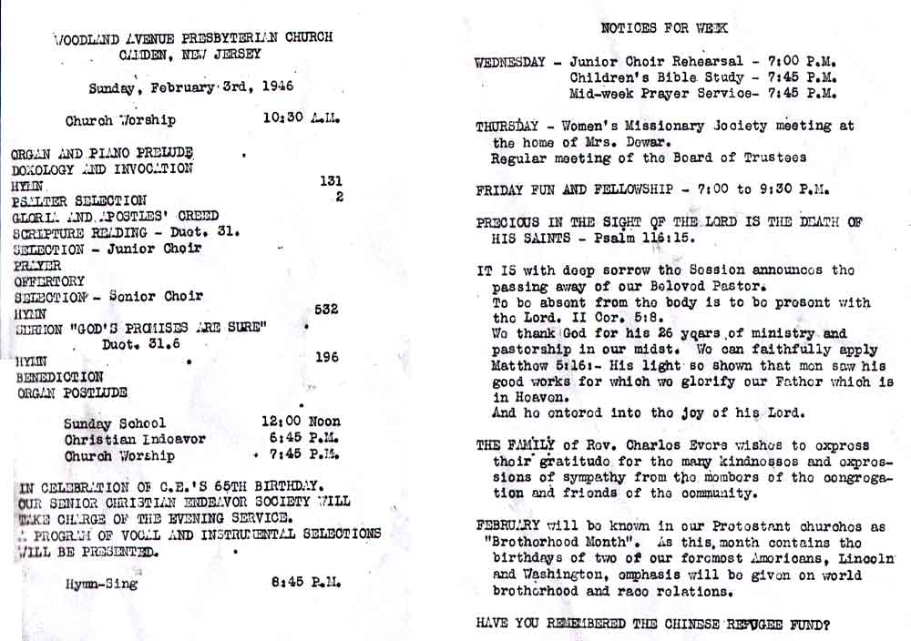 Woodland Avenue Presbyterian Church * February 3, 1946 |