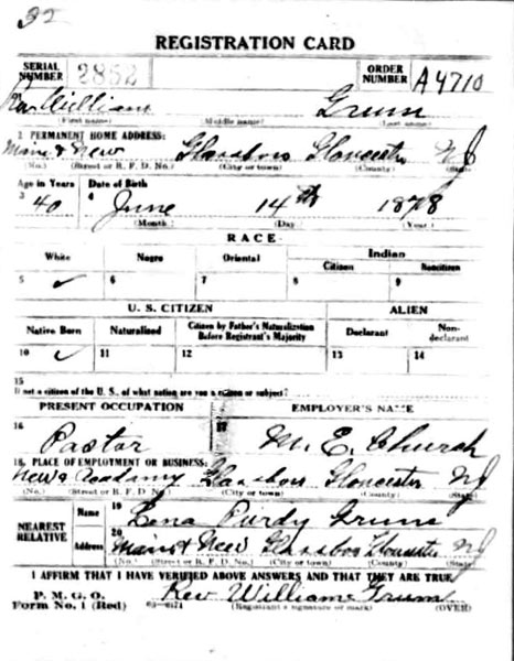 REVEREND WILLIAM GRUM was born July 14, 1878 in Camden NJ to Benjamin and Caroline "Carrie" Grum. His early years were spent at 215 Market Street, where his father had a confectionary. He grew up as a member of Tabernacle Methodist Episcopal Church. The family had moved to 544 Vine Street by 1900, Benjamin Grum worked then as a letter carrier, a position he would hold until his retirement in the 1920s. William Grum married in the early 1900s. His wife, the former Lena Purdy, bore him two children, daughters Lena and Beatrice. Benjamin and Carrie Grum. were still living at 544 Vine Street in April of 1930 when the Census was enumerated. Mrs. Grum remained at the address after her husband passed, and was still living there in the fall of 1933. By 1912 William Grum had entered the ministry. He pastored at Trinity Methodist Episcopal Church and at Kaighn Avenue Methodist Episcopal Church in Camden, and at the First Methodist Episcopal Church in Gloucester City NJ, where he was stationed when the Census was taken in January of 1920. The family home was at 335 Main Street. When daughter Beatrice Crum graduated from Camden High School in 1923, the family was back in North Camden, living at 547 Vine Street. By 1930 Rev. Grum had been sent to serve at the Woodlynne Methodist Episcopal Church in Woodlynne NJ. The Grum family made their home in April of 1930 at 2220 Woodlynne Avenue, the corner of Woodlynne Avenue and Linden Street, in Woodlynne. Sadly, Reverend Grum died suddenly while visiting his mother at the family home at 544 Vine Street in 1931. A talented musician, singer, and composer of religious music, his best known composition perhaps is the hymn "Victory Ahead", written in 1905. Reverend William Grum also had talent as a painter. He had completed a large painting, "The Old Rugged Cross", which stood 15 feet wide by 18 feet tall, shortly before his death. The painting was presented to the Bible class at the Kemble Methodist Episcopal Church in Woodbury NJ in the spring of 1932. Reverend Grum's father, Benjamin Grum, passed away on May 31, 1933. |