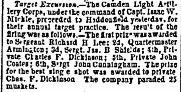 - James B. Shields Charles F. Dickinson - John Coates - John Cunningham Philip M. Armington - Camden Light Artillery |