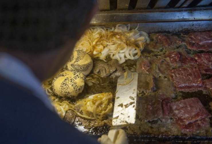 Donkey's Place is a Stubborn Survivor, and so is its Cheesesteak by Rick Nichols, Inquirer Columnist It is a bit of Camden in amber now, Donkey's Place is, or maybe a shrine - the dingy bar hung with photos of the founder, his dukes perpetually up; the grill steaming with steaks and onions; the back room still swathed in the original tobacco-colored mural, a sweep of Sahara, its palms chipped and faded from 60 years of wear. This was his father's brainstorm, his idea of subliminal suggestion, owner Robert Lucas tells me: a parched desert scene calculated to drive his patrons to drink.In fact, the only major change at Donkey's is that while it looks like a bar (circa 1943) and feels like a bar, it is really more a cheesesteakery these days, the Lucas family's magnificent version of the sandwich having triumphed over the booze (especially since the place now closes at 6 p.m., though an adjoining take-out window cranks out the steaks until midnight). The old-timers have faded into the woodwork. Once upon a time during Prohibition, this was a speakeasy serving a Jewish clientele, its secret bell system still visible along with its name above the basement stairs: Parkside Athletic Club. Later its stools were graced with Polish shipyard workers and assemblers from the RCA plant and Campbell's soup-makers dressed in telltale whites, their hair neatly netted. There were lean years after the factories left. Then came the latest wave - African American staffers from three burgeoning hospitals nearby and from City Hall. Not a thing has changed the sandwich, though, a reshaped vision of the South Philly classic. It is as close to taking a bite of 1943 Camden as you'll likely get. The meat is still a block of thin-sliced ribeye folded on the grill, poked at with the corner of a spatula to loosen the texture - but never chopped. The hot, chopped red pepper relish is from K&Z, the Camden pickle maker. The rolls are, yes, round, their tops set on the sizzling steaks to breathe their steam and give them character. They are the same oversize poppy-seed kaisers, baked to Donkey's specs by Del Buono's Bakery in Haddon Heights, just as they have been since opening day. Finally, there are the sweet onions. They were delivered in a little red wagon years ago by a vendor who lived two blocks away. Now it is his son who delivers them. They are ordinary onions. But they become special on the grill, mounded up and around the steaks for close to an hour, sucking up the beefy juice, seasoned with secret seasoning (garlic? paprika?), furrowed and plowed until they are as tender and caramelized as the onions in French onion soup, which is what Lucas' wife, Lisa, sometimes makes from the ones left over. It is big helpings of those onions that give the steak its personality. They're more the signature than the steak, turning the thing into a soupy, gooey, hugely flavorful handful - the beef informing the onions and vice versa, the red pepper relish tangy against the sweet and salt and cheese, the perfect counterpoint. It is so good - and the round roll so intriguing - that after wolfing his first one in 1998, Philadelphia's then-Mayor Ed Rendell wrote to Lucas, urging him to move across the river. It is so good that two years ago, a Jersey expat copied it right down to the double-waxed-paper wrapper in New York's Greenwich Village (at a place called BB Sandwich Bar) that still cranks it out seven days a week. It is so good that Lucas' three children have opened a branch of their own in Medford. But this is the mother lode, where Haddon crosses Liberty - where the cooking is slow, and take-out orders are tucked under the grill, and hallowed boxing gloves dangle over the sands of the Sahara. Lucas' late father, Leon, was a fighter - a champ in his unit in World War I and, in the 1920s, U.S. amateur light-heavyweight champ. Had a punch like the kick of a mule, they say. Gave him his nickname. Left a lasting impression, that's for sure. |