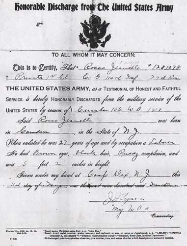 Sea Girt, New Jersey. He was assigned to Company G, 114th Infantry