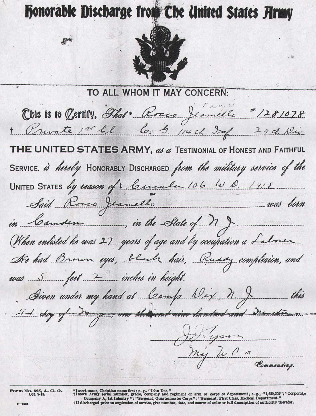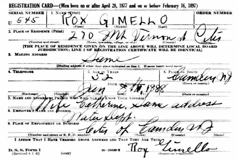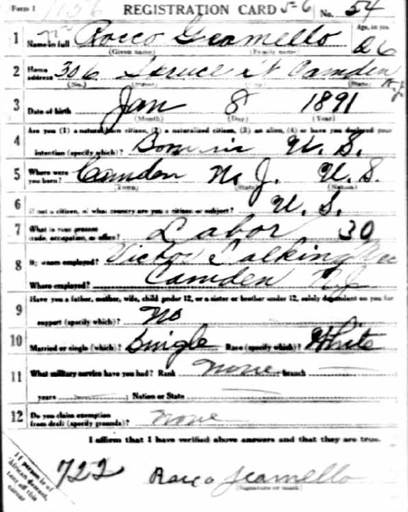 Rocco Gimello registered for the draft on June 5, 1917 he was living