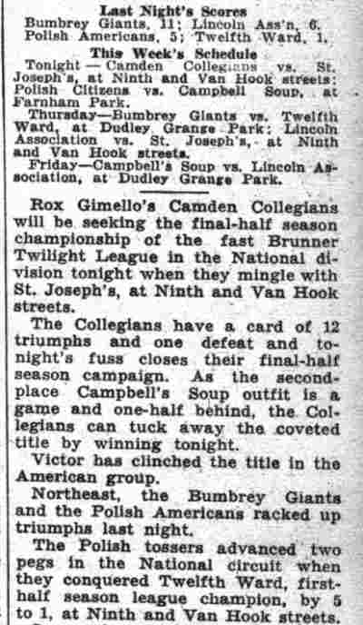 baseball teams of the 30s and 40s. Rocco “Rox” Gimello molded some