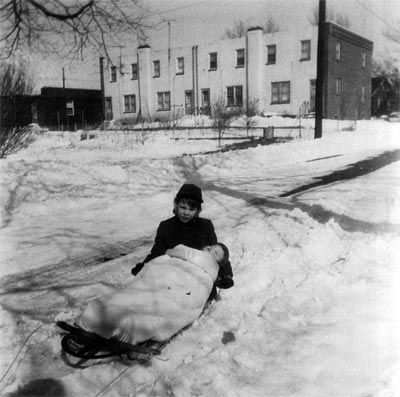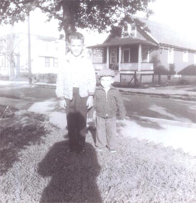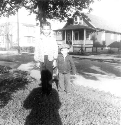 & Glenn Nasuti in the front yard of 3318 Remington Street Behind the boys and across the