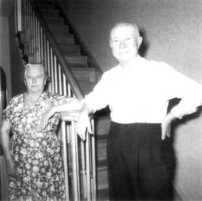 Nasuti standing proudly at staircase that their son Rocco Nasuti handcrafted for them at 25 North 25th Street. |