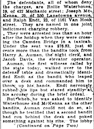 Joseph McKenna - Clifford Baldwin Harry Auman - Hotel Camden Van Hook Street - Mechanic Street - Lansdowne Avenue |