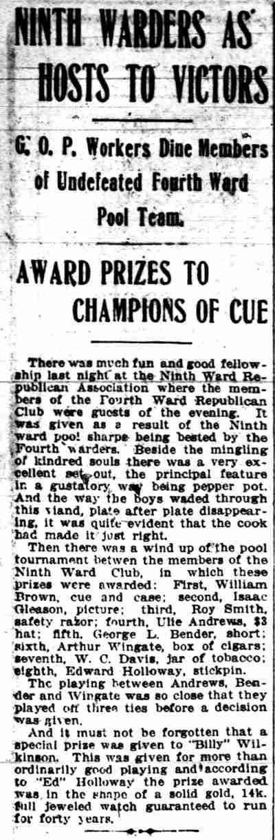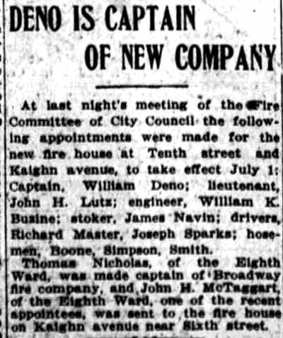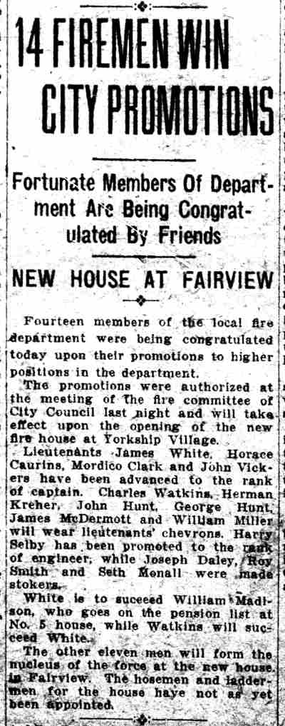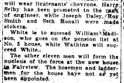 Richard Marter Joseph Sparks - George Boone - roy a. smith - Edward Simpson - Henry C. Knowles Samuel S. Elfreth - George P. Cox - Walter W. Browning - George B. Wade - John A. Stockton Joseph F. Ernst - John A. Dold - Josiah Sage - Daniel Smith - Arthur Wingate - Joseph T. Johnson Harry Hankins - William Laird - William Elberson - John H. Lennox - Martin Carrigan - Charles Cook Harry Selby - Herman O. Kreher - Daniel P. McConnell - William Howell Tatem Harry C. Anderson - Steward Bakley - Joseph Maxwell William Robinson - Richard Sauer - John Watson - Albert Glanders - Ladder Company 1 Charles Menke - Edward S. Gahan - Engine Company 7 - Engine Company 2 |