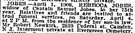Streets. Samuel Jobes' widow, Rebecca Jobes, joined her
