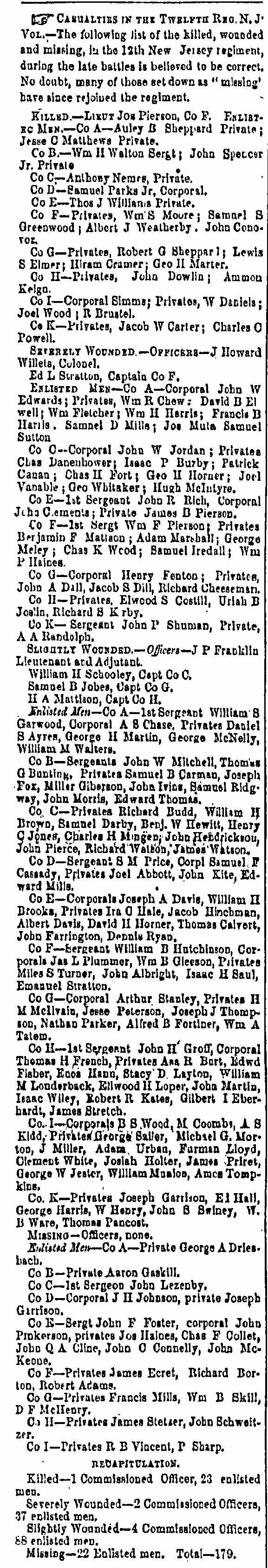 with Company G, 12th NJ Infantry Regiment, on September 4,