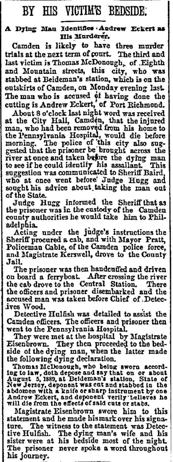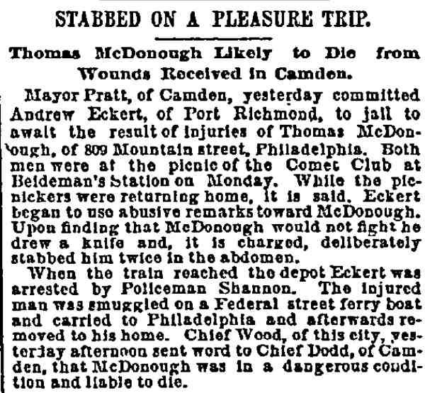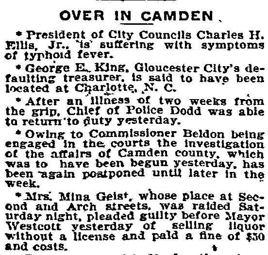Foster - John H. Beard - Edward Zane Harry G. Geesey - John J. Doonan - Charles Kleeman - Stockton Park Hotel West Jersey Hotel - John Polk - East Camden |