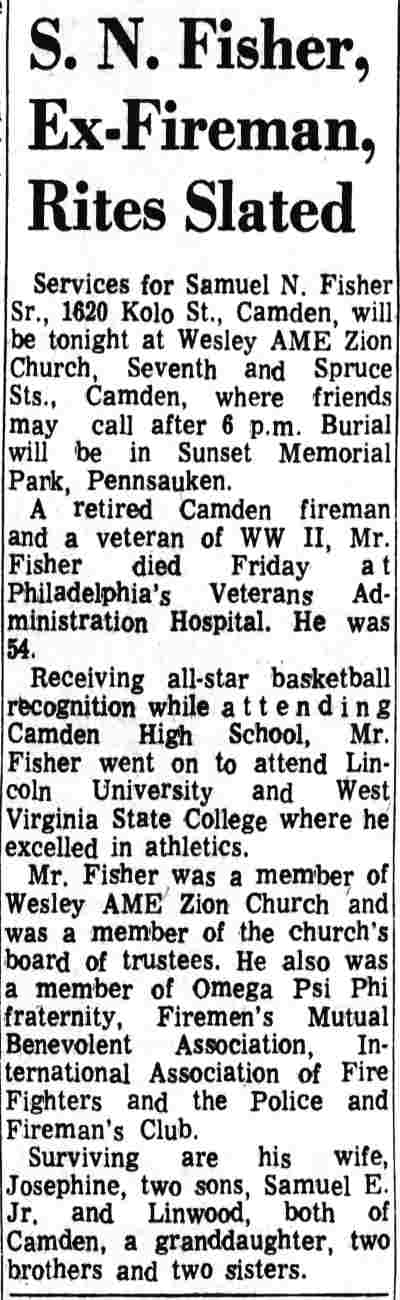 Samuel E. Fisher Jr. also followed his father into the Camden