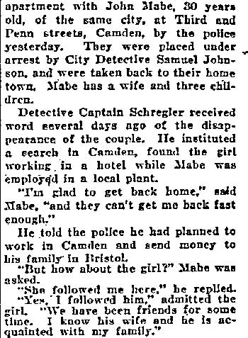 KOBUS ORDERS COP SHAKEUP SHAW MADE ASSISTANT IN PLACE OF KOERNER In a shakeup of Camden police officials yesterday afternoon Lieutenant Samuel E. Johnson was named acting chief of detectives by Commissioner Mary W. Kobus, director of public safety. Lieutenant george a. ward, who has been in charge of the detective bureau for a year, was transferred to take johnson's place in charge of headquarters. Detective louis shaw was made assistant to Johnson, replacing Detective Sergeant gus koerner. koerner was transferred to the Second District, for radio car and street duty. The new order became effective at 4:00 PM yesterday Police Chief Arthur Colsey announced the changes in the bureau after a two-hour conference with Commissioner kobus yesterday afternoon. Maurice Di Nicuolo, who has been an acting detective, was transferred to the First Police District, with former Acting Detective Clifford Del Rossi returning to his old post in the detective bureau. In the only other transfer announced, Sergeant Harry Newton was switched from the First Police District to the Third, with Sergeant Edward Carroll going from the Third to the First. Although no other changes were made public, it is believed yesterday’s are a forerunner of numerous shifts to be made today or early next week.’ “These changes are being made for the good of the service,” Commissioner Kobus declared. “There will be other transfers of officers and men so that all the police may familiarize themselves with all the branches of the department.” Lieutenant johnson was a appointed a policeman on January 1, 1910. After 10 years as a patrolman, he was promoted to a detective, where he made a splendid record. On November 28, 1928 he was made a sergeant, and again promoted on April 8, 1930, when he became a lieutenant. ward was appointed a policeman on August 2, 1917, promoted to detective January 1, 1927, sergeant November 14, 1928 and lieutenant on January 24, 1930. johnson was a detective sergeant when former Police Chief John W. Golden was head of that bureau, but later was transferred to police headquarters. Ward has been in and out of the detective bureau several times. He served for a time as the commander of the First District and later was ion charge of the police headquarters on the 12:00 midnight to 8:00 AM shift. He was a political lieutenant of former Public Safety Director David S. Rhone. |