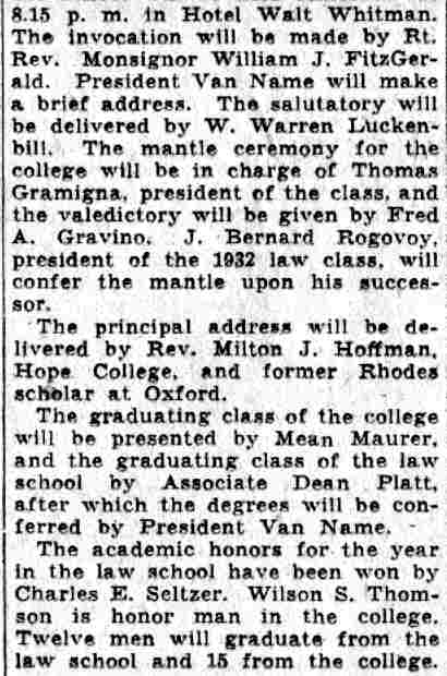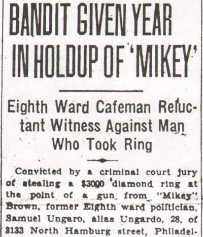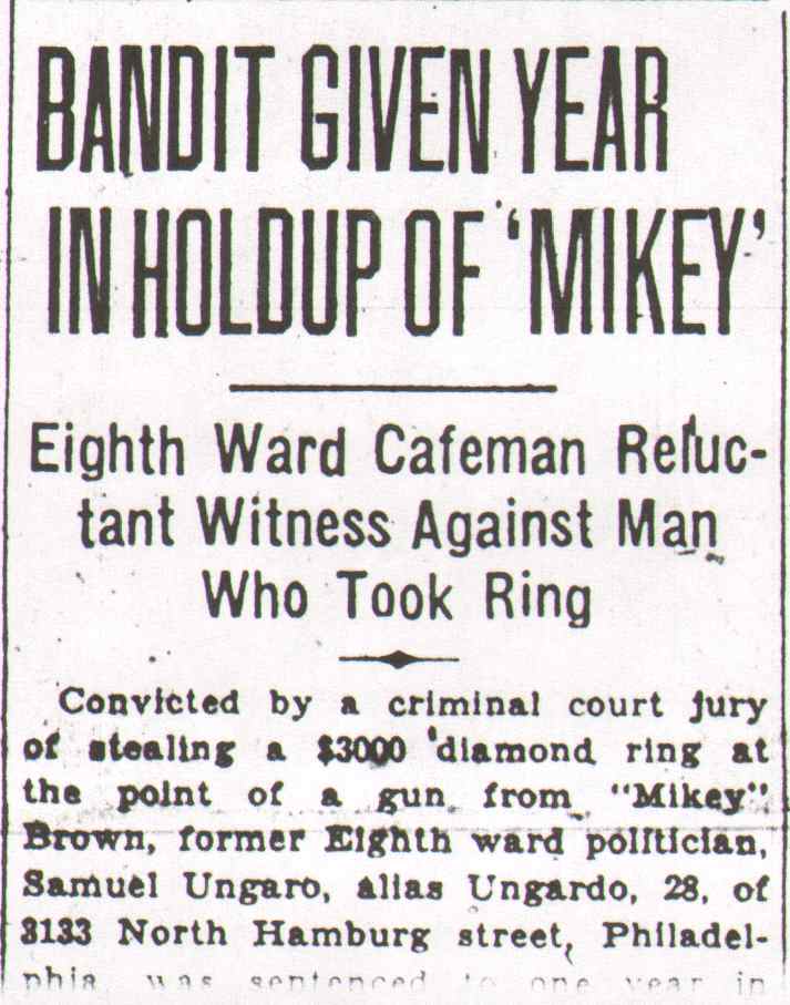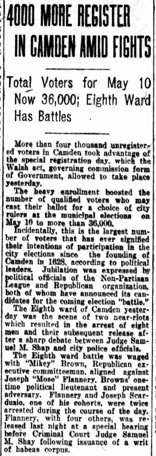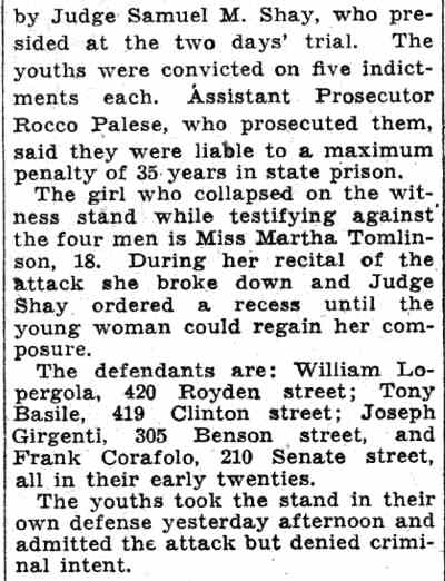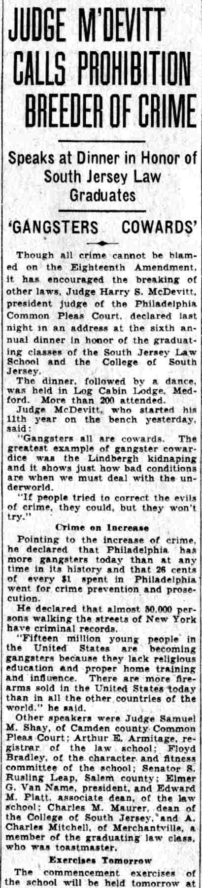 Camden Courier-Post February 9, 1928 anthony "babe" Paradise was arraigned in Criminal Court, Judge Samuel M. Shay presiding, along with Rocco DeCord and James Mucci |