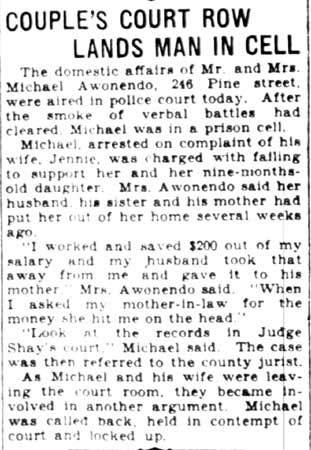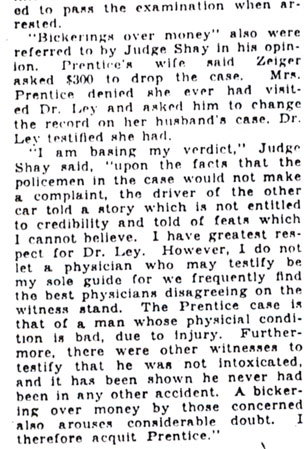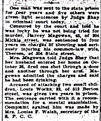 Piece of Paper' Enlivens Numbers Trial Here A mysterious piece of paper yesterday precipitated a verbal battle between Assistant Prosecutor William C. Gotshalk and Defense Attorney Walter S. Keown upon opening of the trial of joseph and Fred Klosterman on charges of number writing. They were placed on trial before Judge Samuel M. Shay and a crlminal court jury. Acting Lieutenant Louis Shaw, of the city detective bureau, testified of a raid on the Klosterman saloon at Mechanic and Green streets and an adjacent house at 1312 Green street. The witness identified a brief-case containing numbers slips and also a postal card addressed to "f. klosterman." When Shaw was turned over to Keown for cross-examination, the defense counsel reached into the case, pulled out a piece of paper and asked how it had gotten into the bar. When Shaw said he had put it there, Keown declared: "Well, put it into your pocket. It has nothing to do with this case." Shaw refused, whereupon Keown rolled it up into a ball and put it in his own pocket. At this, Gotshalk angrily demanded to see the paper, but Keown declared that "you can't see this until after the jury has gone out." When Gotshalk insisted, Keown said he would give it to Judge Shay. He threw it on the judge's desk, but Judge Shay, who was smiling broadly, made no move to take it. Gotshalk then reached out to get the paper, but Keown was quicker retrieving it and placing it in his pocket again. "What right have you to take a state exhibit and place it in your pocket?" Gotshalk queried heatedly. "I want that paper." "I'll show it to Judge Shay," parried Keown. "I don't want to see it," laughed Judge Shay, as Keown paced around the courtroom, followed by Gotshalk. "It has nothing to do with this case," repeated Keown. And there the matter stood. Shaw testified that he, Detective Clarence Arthur and Patrolman John Kaighn entered the saloon December 10, and went out the back door. They followed a path to the Green street house, broke down the door and found Henry Bagroewski, 17, and his mother burning numbers slips in a stove. Shaw said he recovered a half basket of slips. Shaw and Arthur also declared that they found a bell in the house and that it was connected to a push button in the saloon, allegedly for an alarm. Mary King, deputy city clerk, testified that at the time of the raid the license for the saloon was in Joseph Klosterman's name. Shaw's testimony was corroborated by Arthur and kaighn. Shaw was then recalled to the stand and related that as the three detectives went from the saloon to the other house, the Klosterman brothers followed them and demanded to know "why the dicks are always picking on us." The case will be resumed this morning. . |