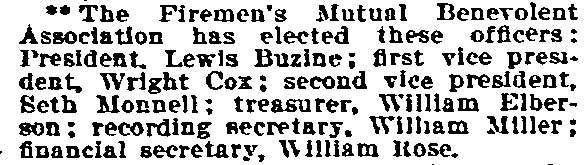 Carrigan Rollo Jones Charles Cook James White Samuel Sheer Edward Finley Joseph T. Daley Joseph Ernst Seth D. Monnell William K. Buzine Charles Sturgis Samuel T. Whitezell Ephraim T. Davis J. Oscar Till Jr. John H. Vickers Frederick Morse Harry C. Anderson William Miller Engine Company 5